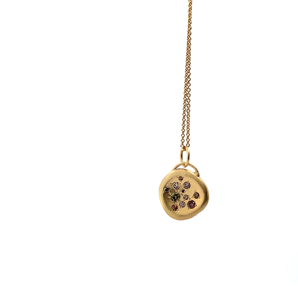 18k Yellow Gold Nine Diamond Disk Pendant