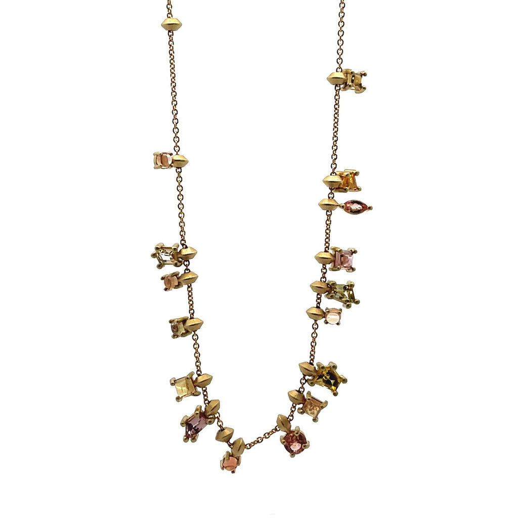 18k Yellow Gold Sapphire and Tourmaline Fringe Necklace
