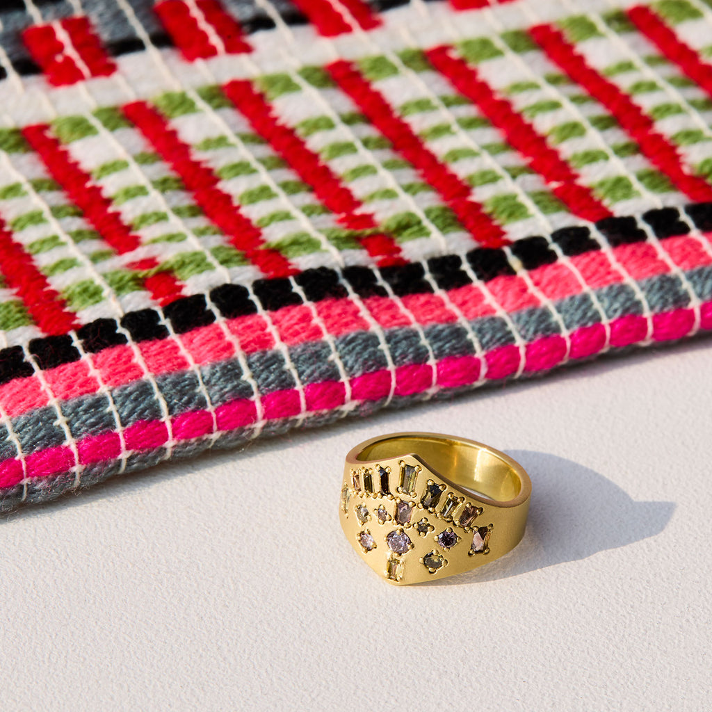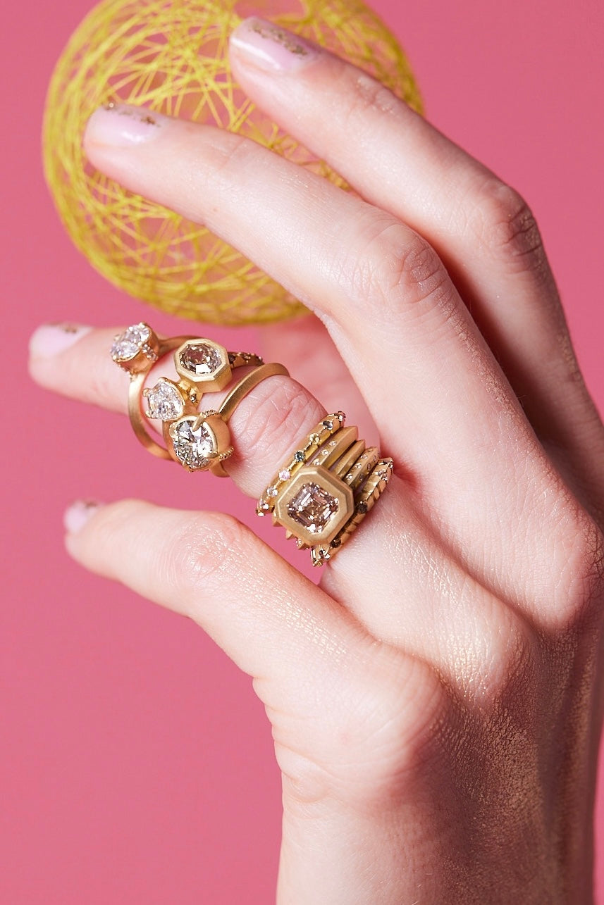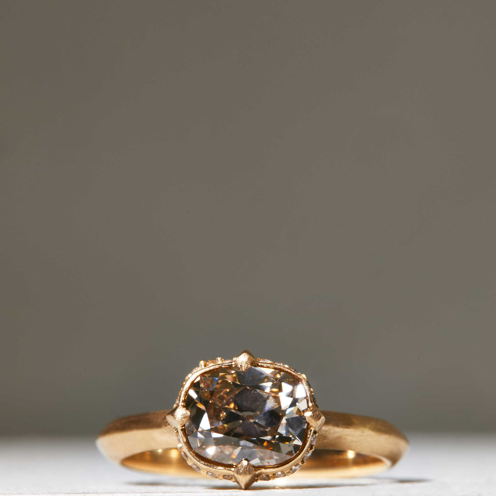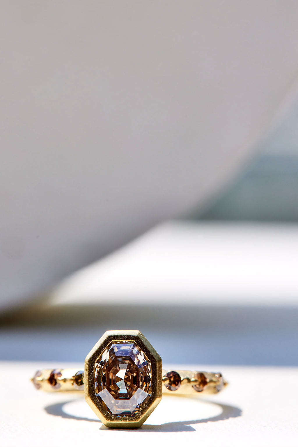 18k Yellow Gold Brown Asscher Cut Diamond Ring