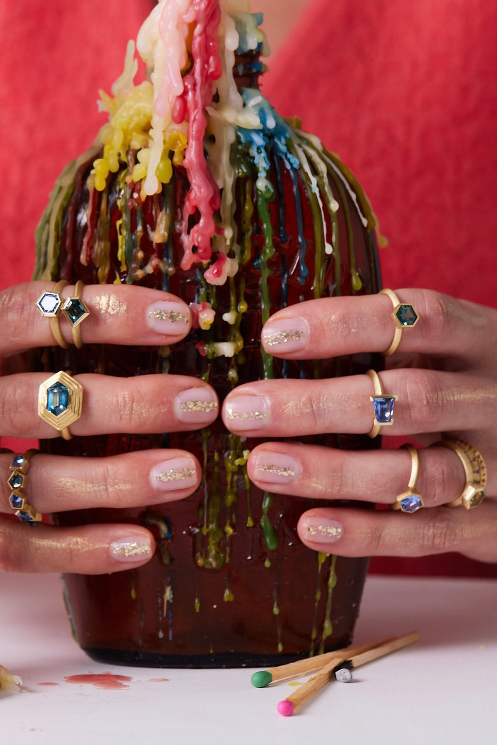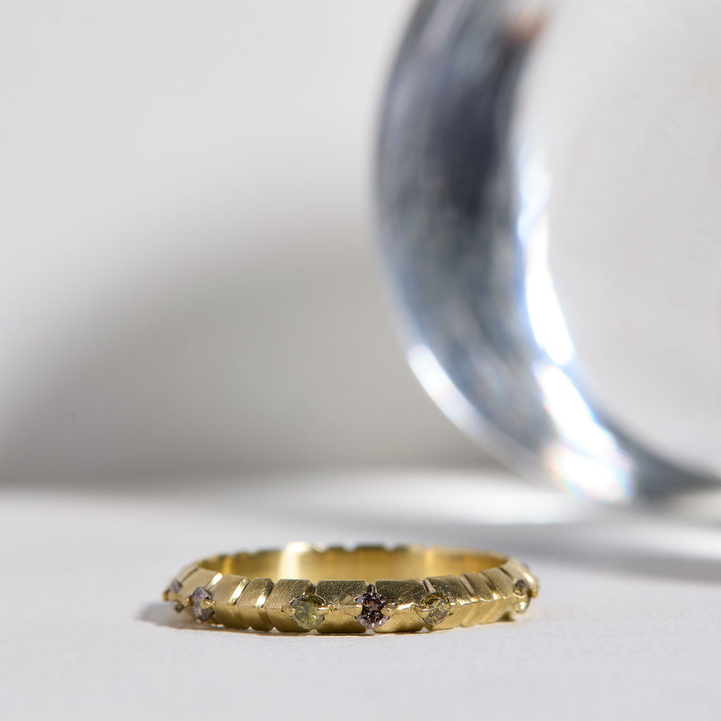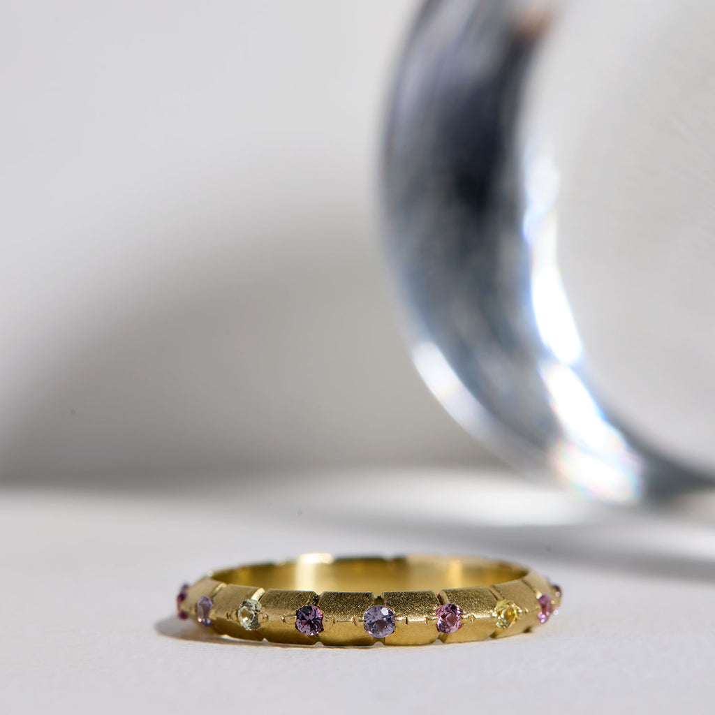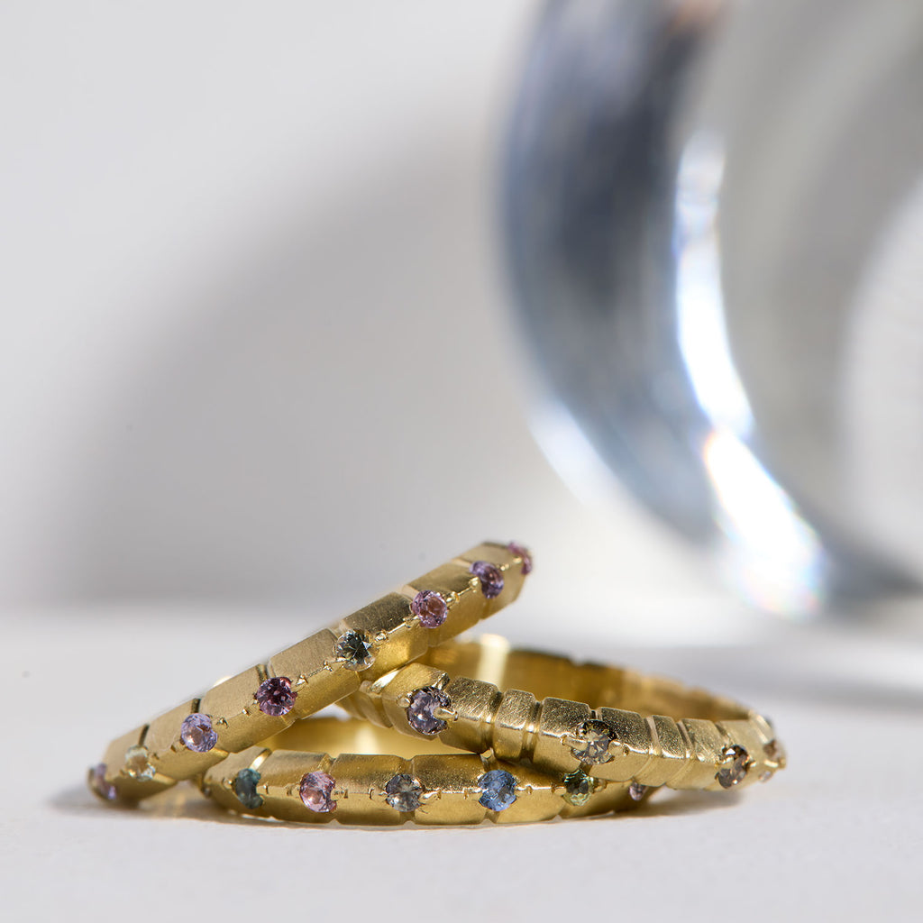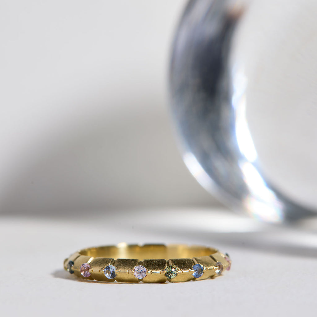 18k Yellow Gold Sapphire Ombre Knife Edge Band